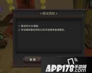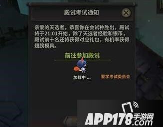 殿试通知一般来说是9:01次会发,点击就能传过去。之前组队也可以答题,不过会被带着到处跑,更新之后应该不能组队了。注意是9.30结束过期不候。