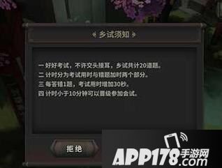 乡试是有时间的规定的,10分钟内答对都可以去参加会试,错一题加30秒。推荐各位想找个合适的百度啊,答题器啊,再来玩~