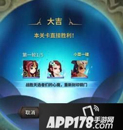 如果抽中了“大吉”,可直接获得丰富奖励、躺赢到下一关;如果是“中吉”,上阵英雄均可恢复一定血量;但如果脸比较黑,抽中了“大凶”,玩家则需要额外打一轮PVP对战才算过关。