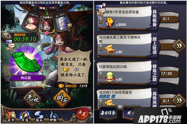 就如同传统的卡牌手游玩法一致,本作无外乎是“加深”了卡牌玩法的解读。手游老鸟们耳熟能详的卡牌品质(橙紫蓝绿白)、进阶、羁绊、装备等一概不落,只不过融入了更鲜明的小说元素,比如说和各类小说中的武器、草药名称都一一挂钩。和小说深度关联的,还有游戏专门添加的各种稀奇玩法,诸如“远古神物榜”“祖石”系统等。虽说在手游中仅仅是战斗力、属性加成的系统,但对于小说读者来说,却有难以言明的亲切感。如果说玩家正在读文的话,感觉应该更为深刻。