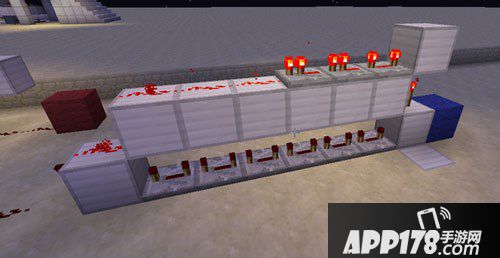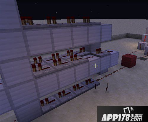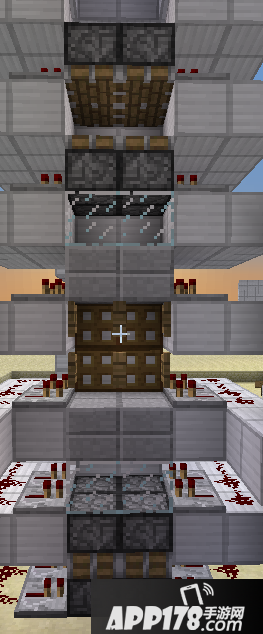 这个是向下电路的反面,利用方块充能传导的电路。搭下去差不多到距离地面10格的位置就可以停了。