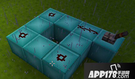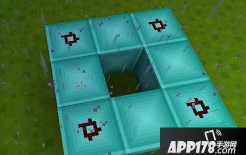 然后再框架的四个角上放置红石粉末