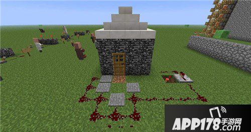 二、还有一种很简单的就是门陷阱啦,我们需要做的就是在陷坑中间放上压力板,再用铁门把周围锁好,然后什么都不用做,只需等待熊孩子走在上面,他们就出不来啦!