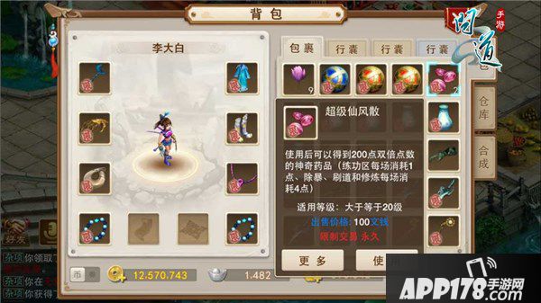 双倍点数用完了如何获得呢?除了系统赠送的点数之外,玩家还可以通过道具“超级仙风散”获得双倍点数(见下图)。