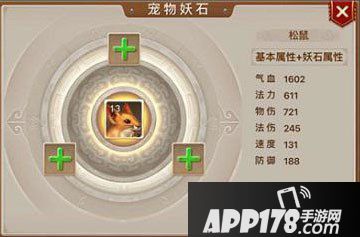 玩家通过宠物界面就能找到妖石功能,通过妖石界面玩家可以放入妖石来增强宠物的实力。