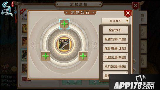 妖石也可以提升宠物的能力,使用妖石的操作十分简单,只需打开妖石界面,并将妖石放置进去即可。妖石的获取可以在杂货铺里购买,也可以通过击败BOSS掉落,如铲除上古妖王等。当然,使用低级妖石合成高级妖石也是非常常见的一种途径。妖石的主要种类有:凝香幻彩(气血)、炫影霜星(防御)、风寂云清(速度)、枯月流魂(物伤)、雷极弧光(法伤)。需要注意的是,同一种妖石一次只能放入一个哦。