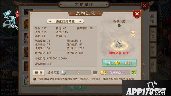 APP178手游网>问道>游戏攻略>问道手游宠物进化功能元宝花费介绍