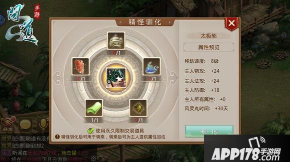 凑齐这5种道具以后,我们就可以进行驯化操作了。当我们驯化完成以后,会附送30天的风灵丸效果。