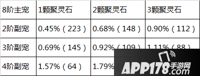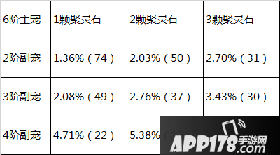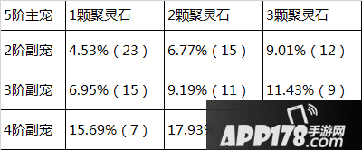 4阶坐骑融合几率:3颗聚灵石+3个4阶副宠,融合成功率最高为50%