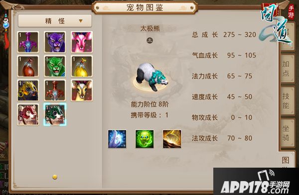 1级就可以携带,但是人物到40级才可以去召唤获取,拥有着高达85的的法攻成长,可以强化8次,一次加6点。总体来说这个宠物适合前期过渡使用,不要强化也不要点化。