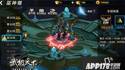 由于《武极天下》手游无副本无体力限制,玩家可尽情周游全地图秘境,不但可以追求等级速度,更可以获得大量物资及装备。途中偶遇的“盗宝小妖”会让你感到不虚此行!除了野外多人秘境,巫神塔也成为了重要突破口,前30层PVE层通关后有海量经验及橙色装备作为奖励,31-40层更晋升到PVP层面,通过1V1人人