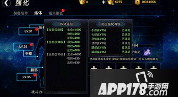 练体通过吃掉雷灵和多余的装备来升级不同身体部位的属性,从而达到提升战斗力的目标。练体达到5的倍数会有额外属性加成,不要太小看它哦,对属性提升很有帮助的!