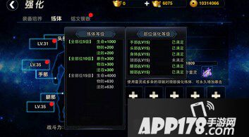 练体既可以用来强化自己各个部位的属性以提升战斗力,同时还能清理背包的空间,可谓一箭双雕。戳一下自己的头像,就可以看到强化啦。