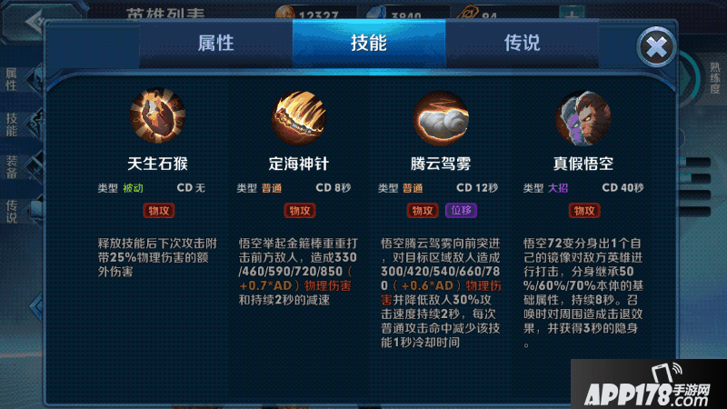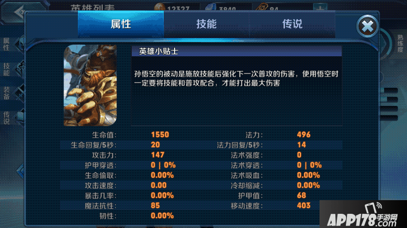 英雄背景:用石破天惊来形容孙悟空是再喊不过了,这个从石头里蹦出来的家伙,出生的时候就闹出了个大动静,幸好尤为仙人云游至此,收他为徒。他去大陆历练,从东海借走了定海神针,决定闯出一番天地。