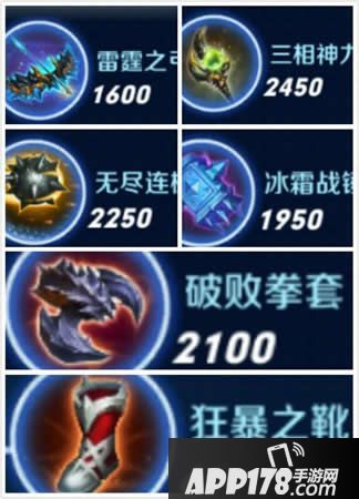 狂暴之靴,雷霆之弓,破败拳套,无尽连枷,三相神力,冰锤。
