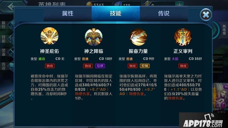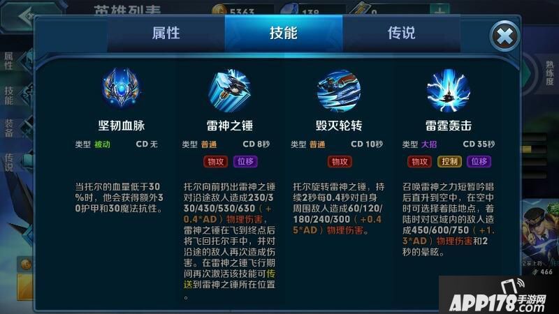 在游戏英雄里面看详细数据,技能看下图