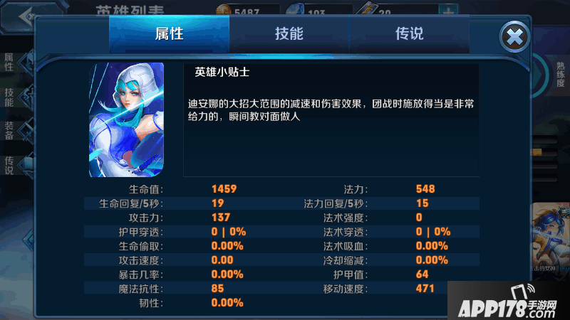 从综合属性来说迪安娜是一个偏弱的英雄,前期很一般,但是手长足以弥补很多问题。