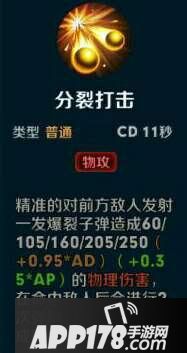 分析:无需瞄准,只要技能范围内存在敌方目标即可施放打击敌人,对线期利用好技能的2次弹射可以很好的消耗对手,团战时不用瞄准的特性可以稳定的打出极高伤害。