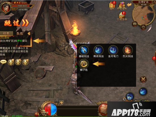游戏界面只有4个技能槽,建议大家放置PK、打怪最常用的4个技能。