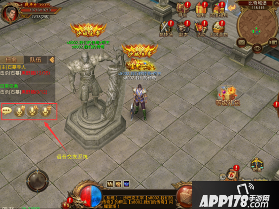 在我们的传奇中聊天系统功能颇多,长按左下角的话筒按钮,即可选择在世界、帮会、队伍频道实时发语音!点击下方的小气泡,可以输入文字发言,左侧按钮提供多个频道选择,点击即可随意切换!
