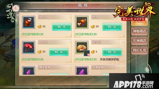 买买买神马的最开心啦!在《完美世界3D》中,有好多商店可以买买买哦~商城分为道具商店、神秘商店、元神殿和特价礼包: