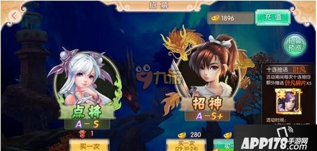 在招募中,也可以获得英雄碎片,招募分为点将招募和招神招募,点将招募需要令牌,一般只能够拿到英雄碎片,英雄级别集中在A-S级,而招神招募2天免费一次,只要累计到10次就可以直接抽到一个英雄,招神招募的范围更广,从A-S+级别。