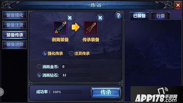 装备强化是有一定的成功几率的,每个强化的等级成功率也不同。强化6级以上,如果强化失败,装备强化等级就会掉落一级。如果想要装备强化失败而不掉级可以用紫云符来对装备进行保护,即使强化失败也不会掉级,也可以选择通过装备传承把强化等级转移给主武器即可。