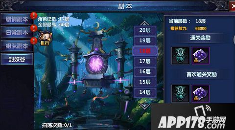 封妖谷是《我欲封天》创新出的一个新副本玩法,玩家可以通过游戏里的“副本”按钮进入封妖谷。玩家每次进入封妖谷会默认从第一层开始挑战,每当完成一层的挑战任务后系统就会给于相应的奖励。层数越高怪物的能力也就越强,相应的难度也会加大,奖励也会随之加大。所以封妖谷不光只是一个简单的刷宝副本,更多的是见证玩家挑战自身实力的历程。封妖谷前期奖励的会是提高翅膀属性的初级道具“灵羽丹”,在之后会逐渐提升奖励至“灵羽仙丹”等珍惜度较高的道具。至于传说中极限的一万层奖励是什么?就需要玩家自行探索了。