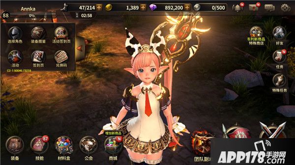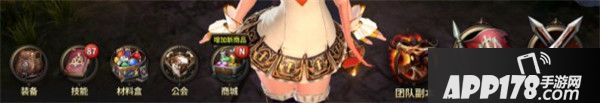 7、底部左侧是装备,技能,材料盒,工会,商城的入口,点击后可以进入相应的界面。