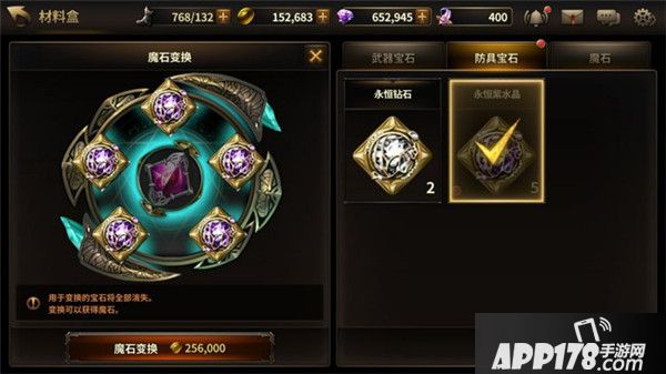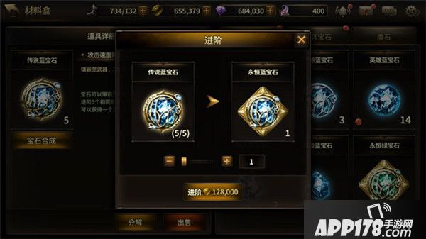 宝石和装备一样氛围英雄、史诗、传说、永恒等7个等级,同时5个同类宝石可以合成一个高一级宝石,另外永恒宝石还是可以用来合成魔石(下文有详解)。另外分解一个宝石可以获得种类相同但品质低一级的3个宝石。