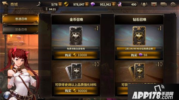 TIPS:普通召唤会定时提供免费召唤次数哦,钻石召唤每3天可重置一次,记得前来抽取极品装备哦!