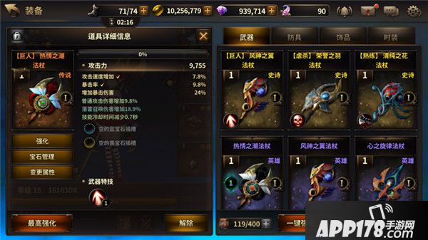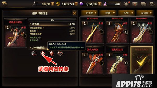 史诗及以上的武器还有带有武器特效技能,部分特效技能也能大大奖励闯关难度,比如巨人武器特效可以提升对首领型怪物的伤害,这个效果同样反映在战斗力上,但却非常实用。