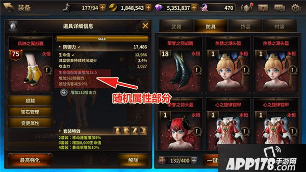 随机属性是可以通过宝石或者变更券进行重新生成的,不过由于仍旧是随机生成很难保证质量,所以前期不推介进行属性变更,等有固定的永恒套装后在变更不迟。
