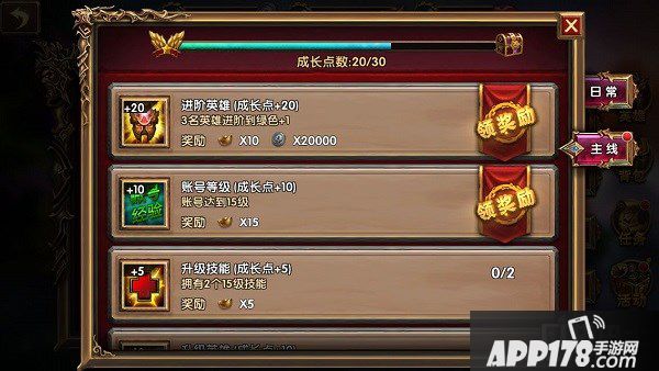 主线任务:没完成一个主线任务都会获得最低5元宝的奖励,且随着主线任务的推进,奖励的元宝数量逐渐增多。另外,完成主线任务后会累积的成长值,成长值对对应不同数量的元宝奖励。