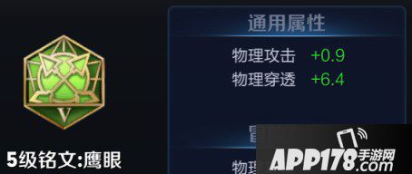 绿色:五级鹰眼,提供物理攻击0.9及物理穿透6.4