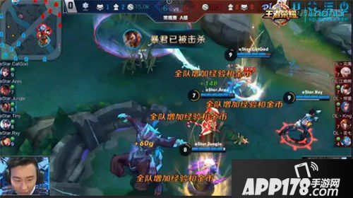 拿下优势的eStar又开始进入了自己熟悉的节奏,刘邦在上独自一人带线,导致DL不得不分一人去看管,如果4V4遭遇小团战的话,宫本武藏的大招能够提供范围的先手控制,这点让DL相当不适应。