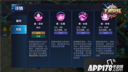 被动(语·花印):叠加被动才能使貂蝉的输出达到最大化,对自己有增益效果,对敌方有减益效果是构成这名英雄的核心技能。新手召唤师们需好好解读该技能。