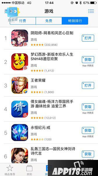自从阴阳师手游公测以来,用户量就已经以迅猛之势增长。目前在app store上的游戏畅销排行已经稳居第一位,而王者荣耀则排在第三位。