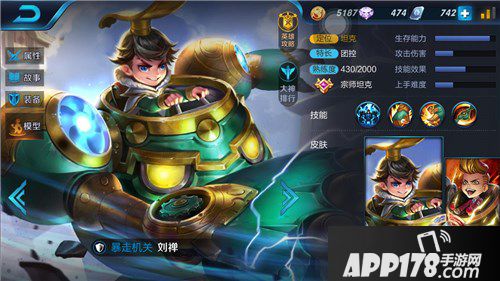 欢迎来到坦克训练营,本次为大家介绍的英雄是骑乘机甲的少年,战斗力十足的机甲加上刘禅机智的脑袋,一直威风凛凛地驰骋在峡谷中。