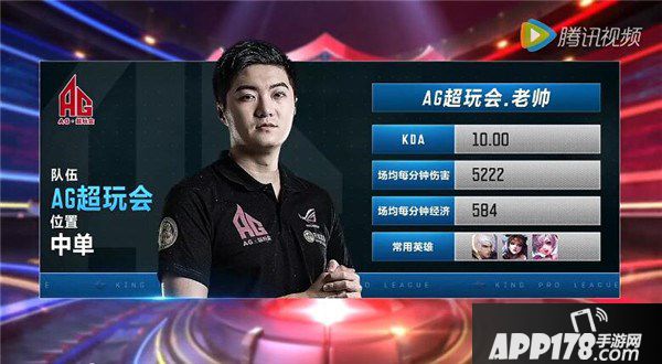 首先说说老帅,作为AG超玩会的当家中单,老帅在AG超玩会豪取十一连胜的过程中,绝对立下了汗马功劳。自从第二场与WF的比赛开始,AG超玩会便一路高歌猛进,未尝一败。