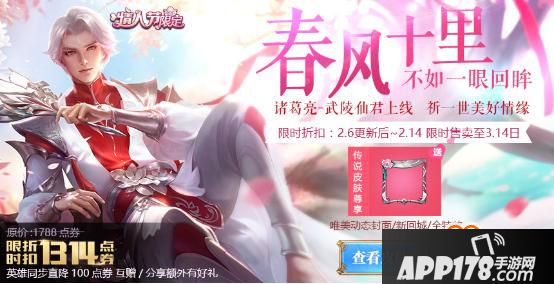 1、 诸葛亮情人节限定-武陵仙君登场,祈一世美好情缘!