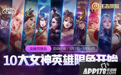 十大女神英雄限免开启,届时可以免费挑选一位你心仪已久的女神与你一起勇闯峡谷,记住和女神的约会时间咯,不准迟到,不准放鸽子!