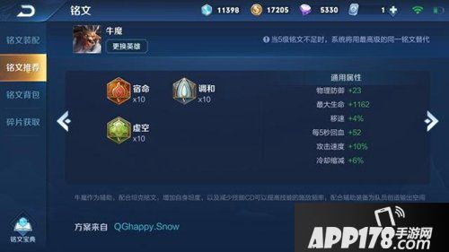 这套铭文主要是增加防御跟生命,顺便增加冷却缩减,这套效果让牛魔的生存能力增强很多,同时让牛魔能够更加频繁的使用技能。
