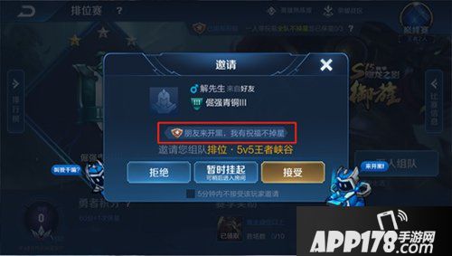 2. 4月6日当天,玩家多人组队参与排位时,只要队伍中有一个玩家拥有朋友祝福,该队伍均可享受祝福保星的效果,对局失败不会掉星;