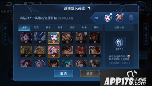 ②召唤师可以在排位赛、巅峰赛界面中选择想玩哪些英雄(默认使用系统推荐的“常用英雄”)。