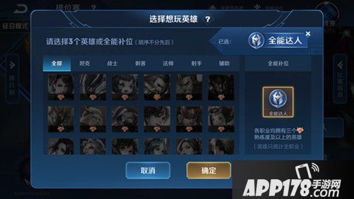 此外我们新增“全能补位”选项。如果你在各个职业都有非常擅长的英雄,而且也愿意根据队友的阵容进行补位,你可以获得最高规格的炫耀展示。能力越大,责任越大,你擅长的英雄越多,队友也将更加信任你。