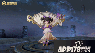 小乔向前甩出旋转的扇子,粉紫色的特效十分夺目呀!