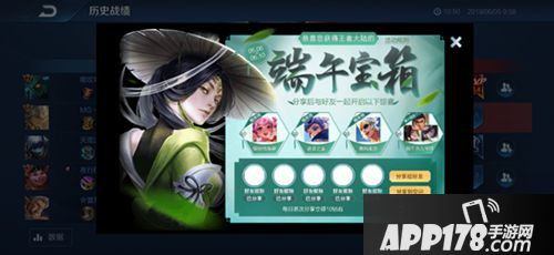 每次参与5v5匹配或排位(巅峰赛除外),对局结束后即可获得王者大陆的端午宝藏,分享出去即可与好友共同开启惊喜好礼!