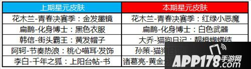 本期体验皮肤:后羿-阿尔法小队,程咬金-星际陆战队,露娜-哥特玫瑰,扁鹊-救世之瞳,安琪拉-玩偶对对碰。