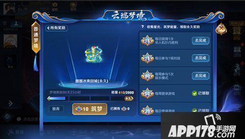 激活普通/高级梦境后,完成每日任务会获得星光,消耗星光就可以为梦境充能,筑梦还有一定概率暴击,让梦境能量成长翻倍。